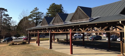 On January 23, 2013 citizens and government officials from the Town of Carrboro held a ribbon cutting ceremony to celebrate the installation of a 5 kW solar photovoltaic system on the Farmer’s Market at the Town Commons. In an effort to “lead by example” the Town of Carrboro contracted with the Appalachian Institute for Renewable Energy (AIRE) to assess the physical and financial feasibility of the project, manage the financial and legal structuring of the development, and oversee the installation process. The installation was completed by Sundance Power Systems, Inc. who offers design and installation services throughout North and South Carolina (www.sundancepower.com).